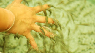 When i was reading stars online, i found an interesting article titled 'Something's fishy'. Okie, it's about fish spa. Of course, it is a nice article which is worth-while spending time to have a glance at it. Fish spas are all the range in Malaysia. It is a treatment involved dipping your leg into a pool of fish. It is a way of exfoliating.